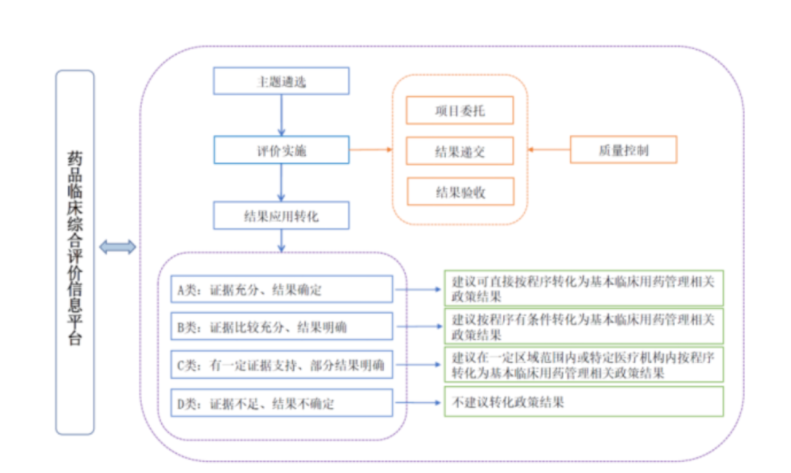 药品临床综合评价以人民健康为中心,以药品临床价值为导向,利用真实世界数据和药品供应保障各环节信息开展药品实际应用综合分析,探索建立并逐步完善基于政策协同、信息共享,满足多主体参与、多维度分析需求的国家药品临床综合评价机制,为完善国家药物政策、保障临床基本用药供应与合理使用提供循证证据和专业性卫生技术评估支撑。